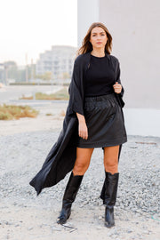 We love oversized but we also love a good mini skirt for its versatility. We also love the cool look of leather and are so happy to be able to introduce to you our fist vegan leather product.